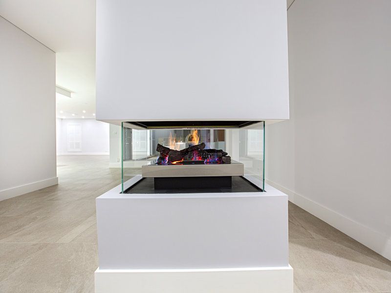 An organic palette of stone, timber & fire creates a welcoming vibe with natural light entering the property through the seamless glass window panels.
